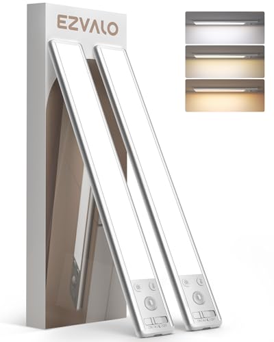EZVALO Under Cabinet Kitchen Lights, 3 Color Dimmable 134 LED Motion Sensor Lights Indoor, 3200mAh Rechargeable LED Lights for Cupboard, Kitchen (37cm, 2 Pack)
