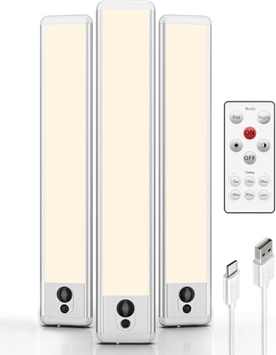 Lixada Under Cabinet Kitchen Lights Rechargeable 3 Colors Dimmabl Motion Sensor Under Cupboard Lights Indoor Wireless Night Lights Bar for Kitchen, Shelf, Closet, Hallway