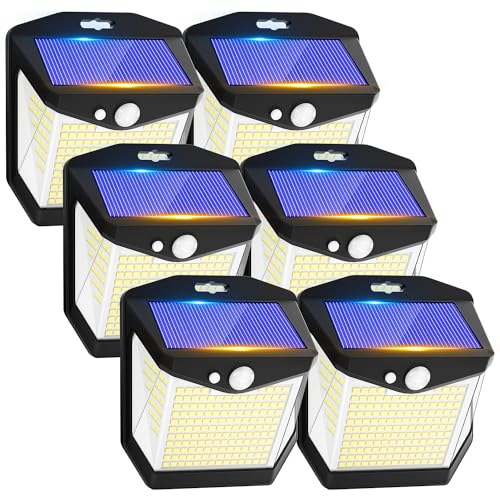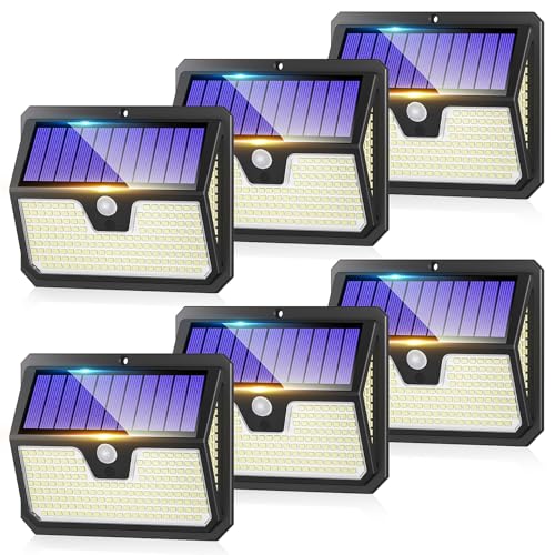 Solar Security Lights Outdoor Garden: 248 LED Solar Motion Sensor Light 3 Modes and 270° Wide Angle lighting IP65 Waterproof Outside Solar Powered Wall Lights for Garden Fence Garage Yard 6 Pack