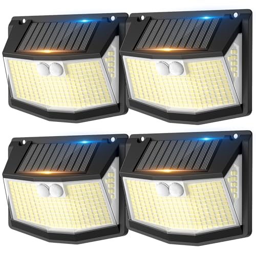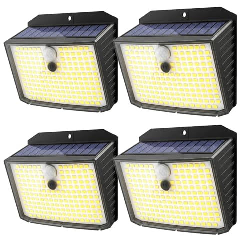 Peasur Solar Security Lights Outdoor Motion Sensor, 168LED 4 Pack Solar Powered Lights Outdoor Garden with 3 Modes, IP65 Waterproof Fence Lighting for Outside Yard Porch Step Deck