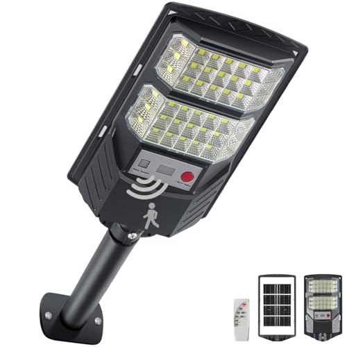 JESLED Solar Security Lights, 104 LED Motion Sensor Lights Outdoor, Remote Control, IP65 Waterproof, 3 Color Temperatures, 4 Modes Outside Lights Solar Powered for Yard, Garage, Garden