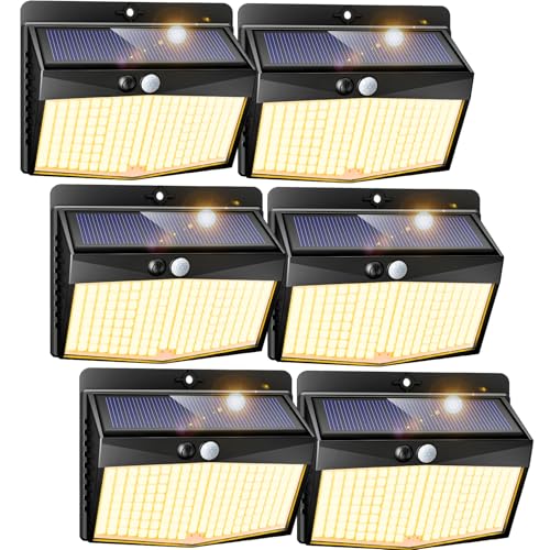 Peasur Solar Security Lights Outdoor Motion Sensor, 168LED 6 Pack Solar Powered Fence Light with 3 Modes, IP65 Waterproof Solar Wall Lighting for Garden Outside-Warm White