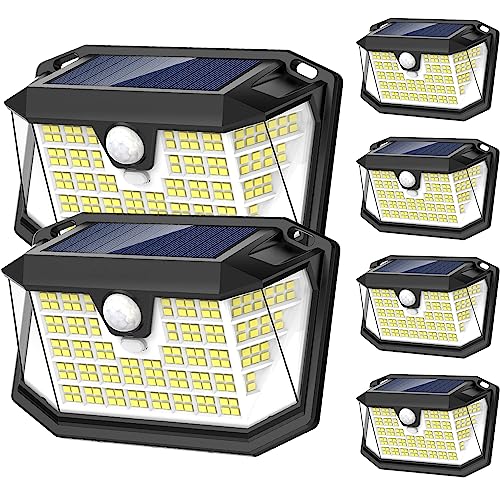 6 Pack Outdoor Solar Lights, 238 LED Solar Security Lights and 3 Modes Motion Sensor 270° Wide Angle Solar Powered Lights IP65 Waterproof Solar Wall Light for Front Door, Yard, Garage, Garden