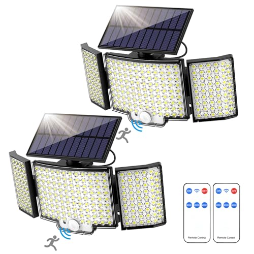 PIKOY Solar Lights Outdoor Garden[2 Packs],238LED 2000LM Solar Garden Lights,3 Mode Remote Security Lights Motion Sensor,2200mAh Outdoor Wall Lights,IP65 Garden Lights Solar Powered Waterproof