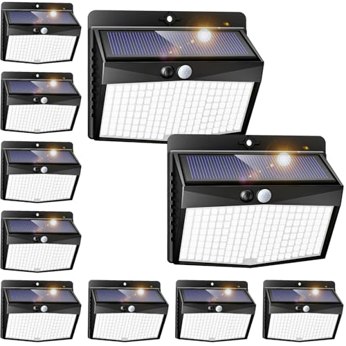 Peasur Solar Lights Outdoor Garden, Upgraded Wireless 168LED Solar Security Lights Motion Sensor, IP65 Waterproof Solar Powered Wall Lights with 3 Modes for Yard, Door, Fence, Garage (10 Pack)
