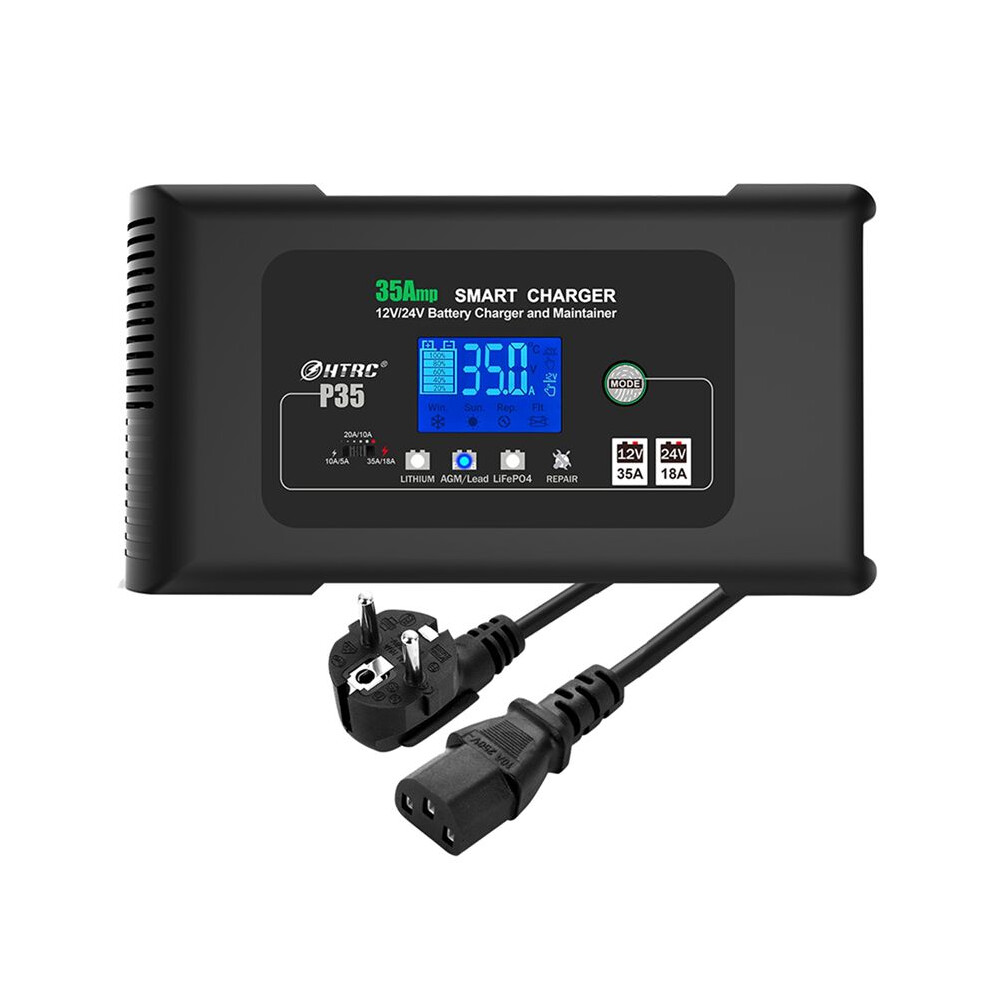 HTRC 35A 12V 24V Car Battery Charger for Auto Moto Truck Motorcycle AGM Lead Acid PB GEL LCD Display Charging,EU Plug