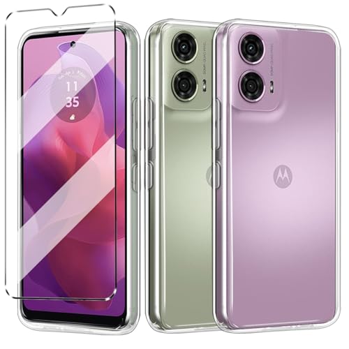 Cover Compatible with Motorola Moto E14 / G24 / G04 Case with 1 Pack Tempered Glass Screen Protector Phone Case for Motorola E14 / G24 / G04,Soft TPU Slim Fit Shockproof Anti-Scratch -black