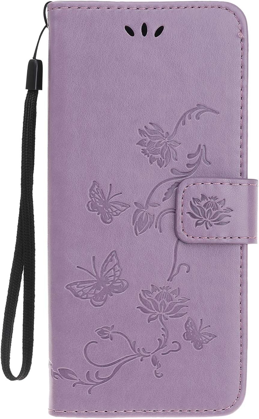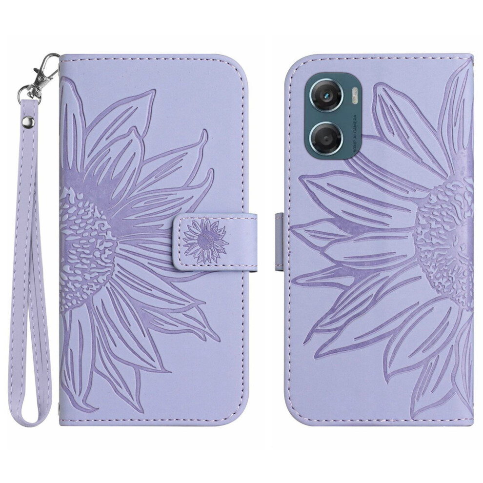 (Purple) For Motorola Moto G06 4G Leather Case Butterfly Floral Imprint Wallet Stand Cover - Golden