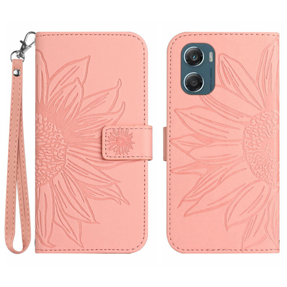 (Pink) For Motorola Moto G06 4G Leather Case Butterfly Floral Imprint Wallet Stand Cover - Golden