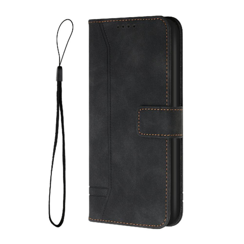 (Black) Phone Case for Motorola Moto G35 Hand Strap Flip Folio Wallet Card Slots Cover Magnetic Closure Pu Leather