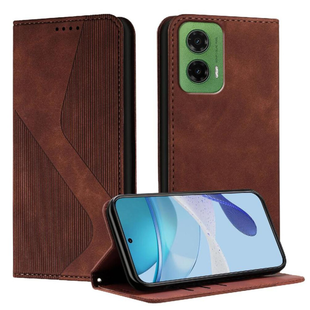 (Brown) Case for Motorola Moto G35 5g Magnetic Closure Pu Leather Wallet Handy Stand Card Slots Cover