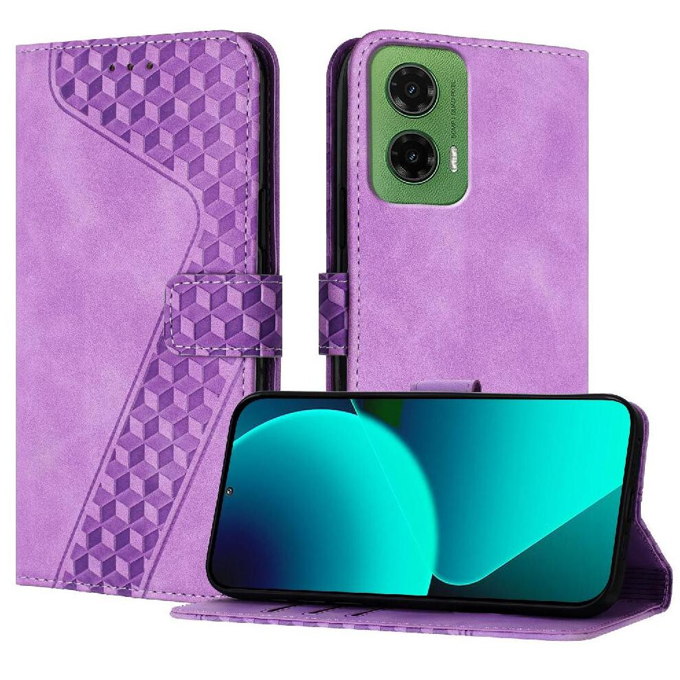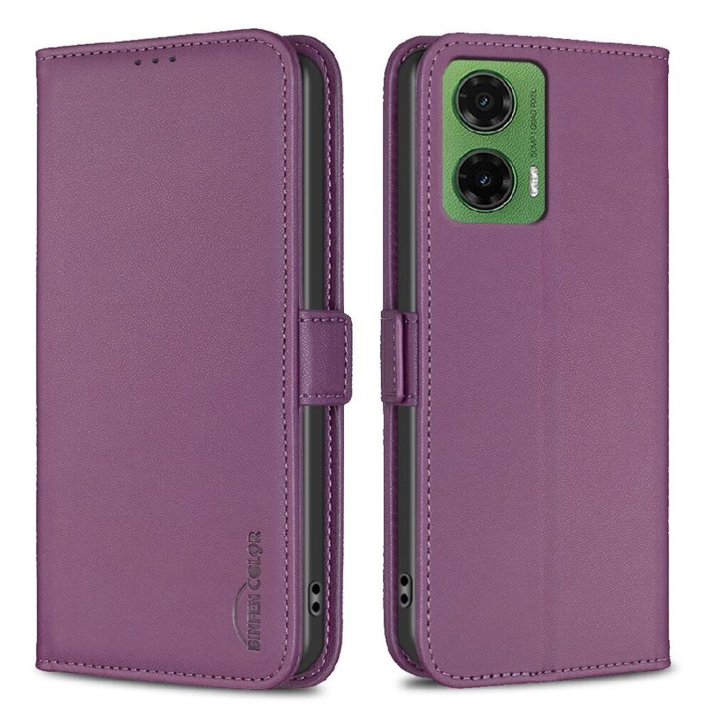 (Purple) Case for Motorola Moto G35 5g Magnetic Closure Pu Leather Wallet Handy Stand Card Slots Cover