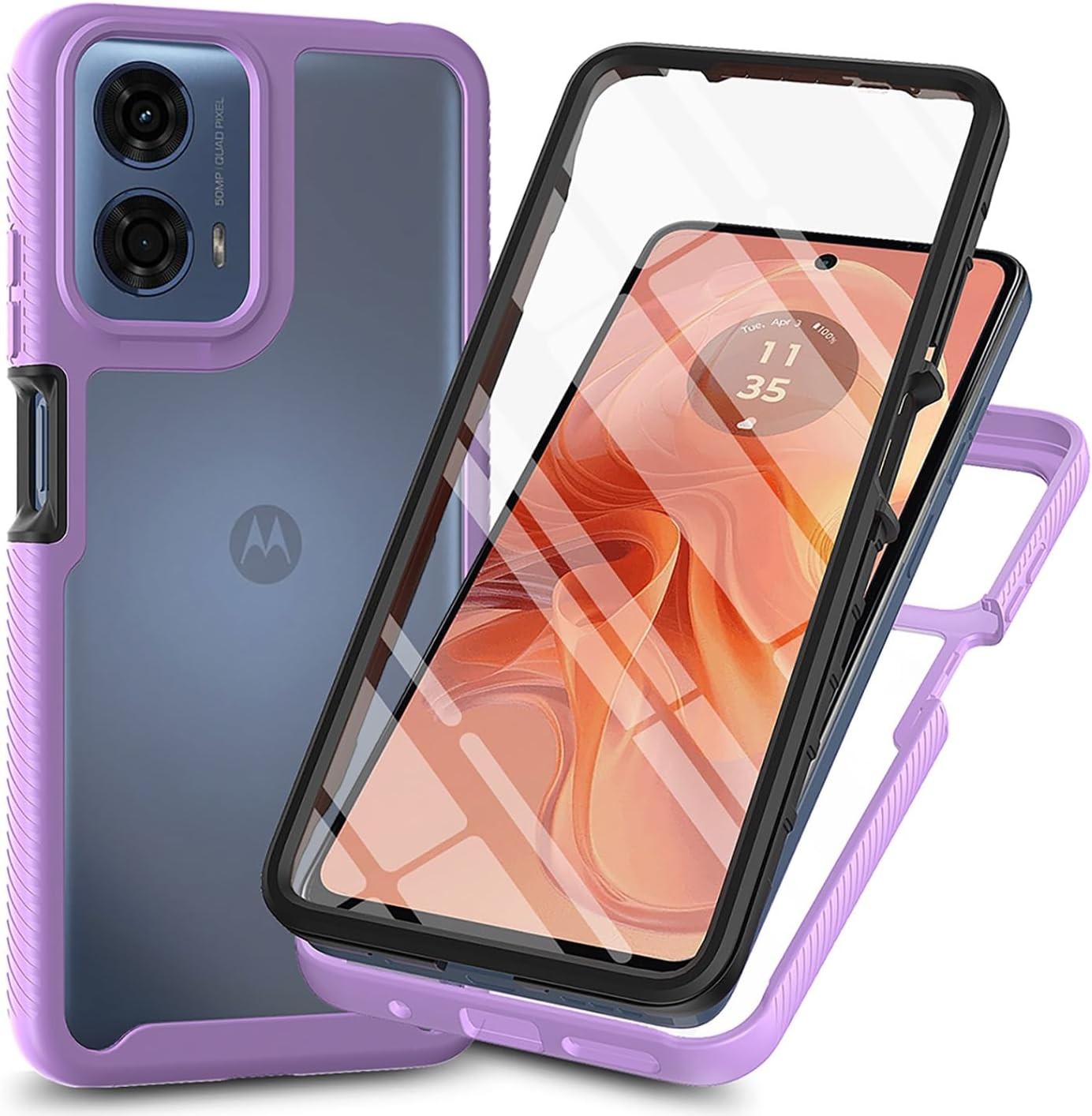 TPU/PC PET Sky Case for Motorola G55 Moto G35 Funda Capa with Screen Protector 360 Degree Protect Shield Clear Phone Cover