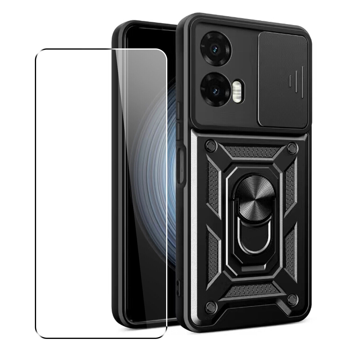 Case for Motorola Moto G35 Camera Lens Cover Stand Black