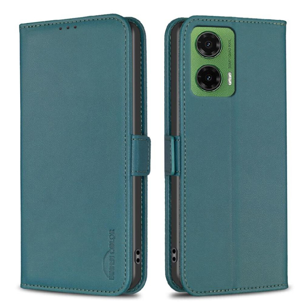 (Green) Flip Case for Motorola Moto G35 5g Shockproof Card Holder Kickstand Magnetic Pu Leather Protective