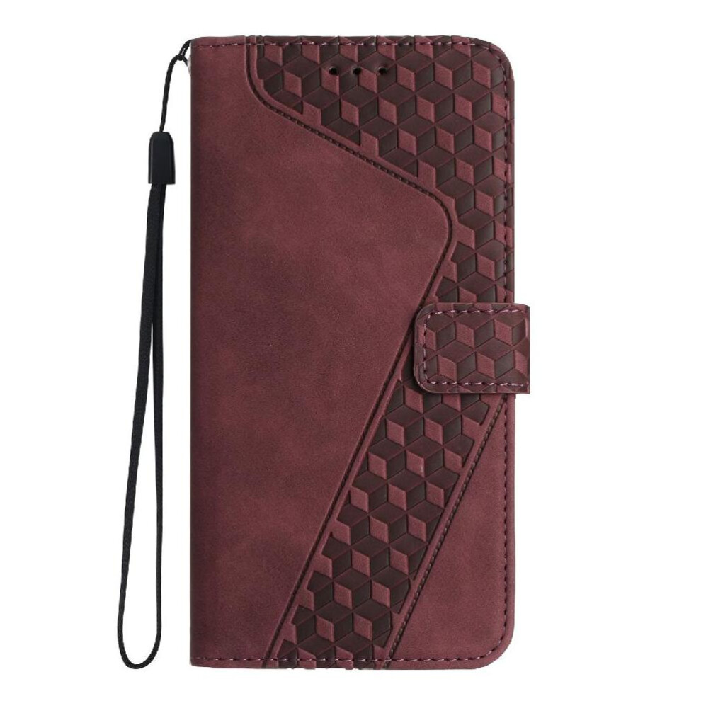 (Red) Phone Case for Motorola Moto G35 Hand Strap Flip Folio Wallet Card Slots Cover Magnetic Closure Pu Leather