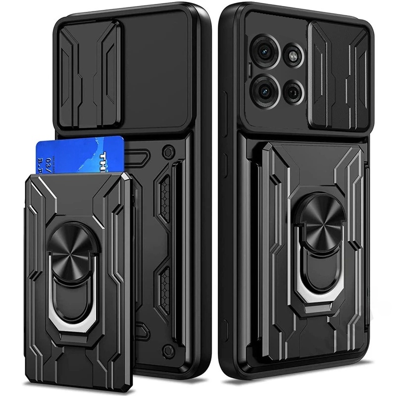 Case For Motorola Moto G86 G56 Edge 60 Fusion 50 G35 G15 G55 5G Card Holder Slide Camera Ring Stand Armor Kickstand Cover