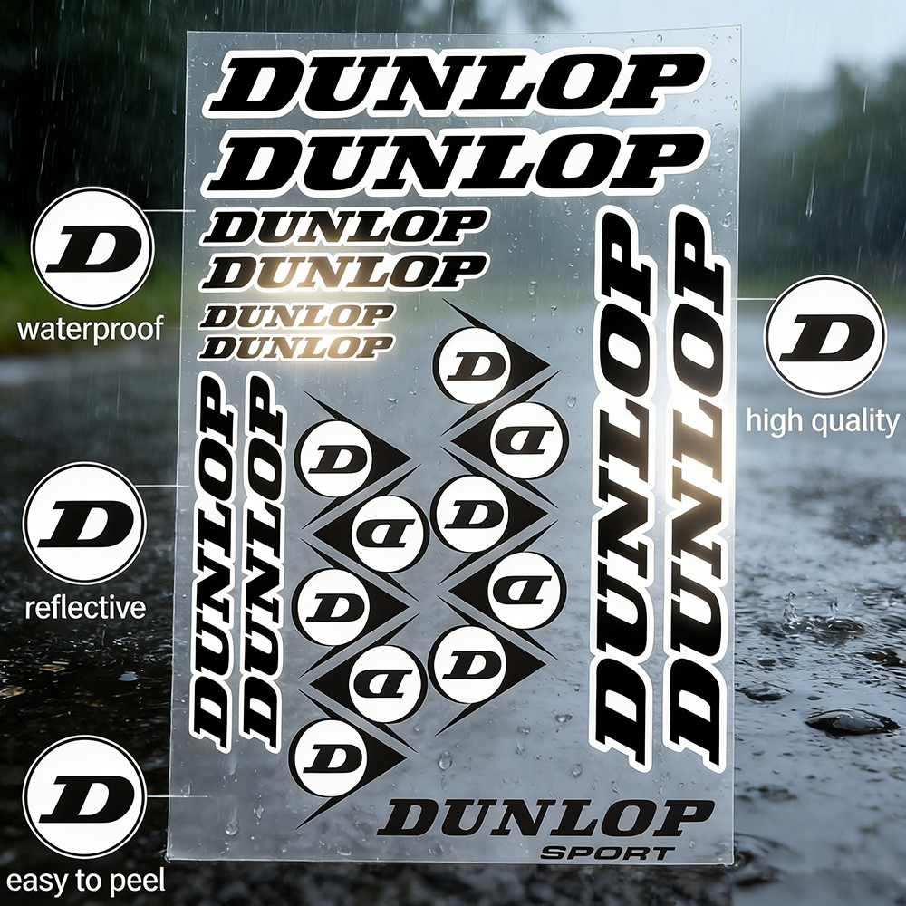 For DUNLOP Reflective Motorcycle Stickers, 3M Safety Warning At Night In The Dark Scooter Helmets Moto Sticker