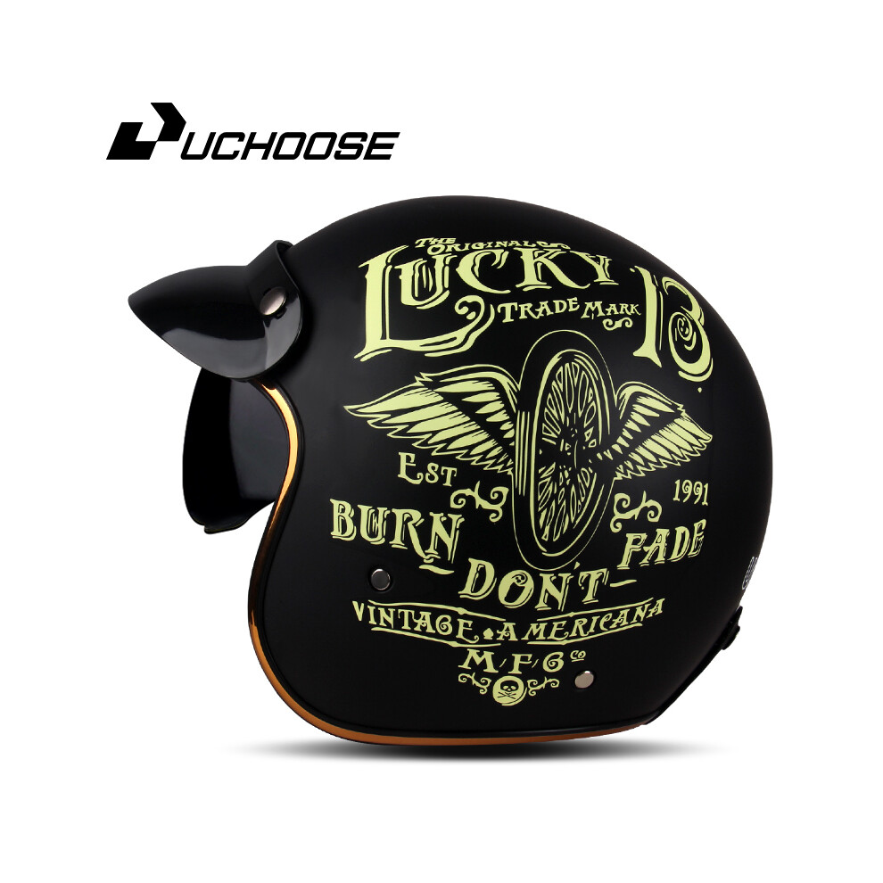(XL, LUCK13) DOT Open Face Casco Moto for Harley Motorcycle Accessories Men Moto Helmets Certificated Retro Motorcycle Helmet Cafe