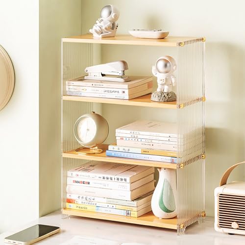 Desktop Display Shelf, Bamboo Multi-Tier Display Rack Display Case,Acrylic Stackable Display Case, Collectibles Models Toy Storage Organizer, Home Office Ornaments(Natural,34*15*40cm)