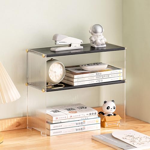 Desktop Display Shelf, Bamboo Multi-Tier Display Rack Display Case,Acrylic Stackable Display Case, Collectibles Models Toy Storage Organizer, Home Office Ornaments(Black,34*15*12cm)