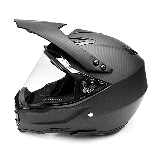 Woljay Carbon Fiber Off-Road Full Face Motorcycle Helmet Racing Helmets Motocross ATV Matte Black (Transparent, Small)