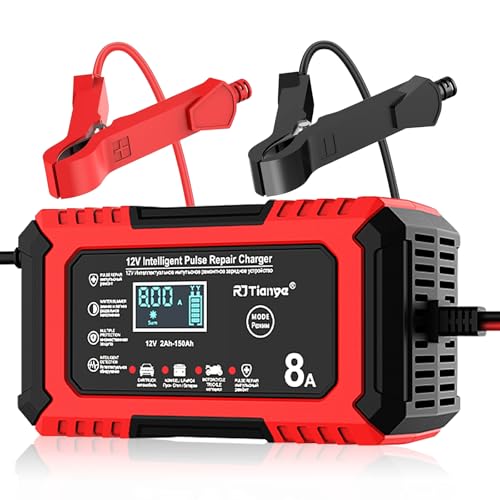 8A Car Battery Charger, 12V 8A LiFePO4 Battery Charger, Portable Battery Maintainer, Trickle Charger and Desulfator with 4 Charging Modes for Leisure, Lithium, Motorbike, Motorcycle Caravan Batteries