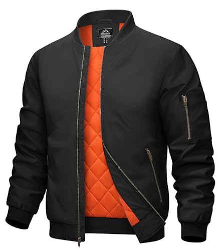 MAGCOMSEN Tactical Jacket Mens Military Warm Windbreaker Jacket Mens Lightweight Autumn Bomber Coats for Men Winter Outdoor Skiing Motorbike Jackets for Men , Black, M