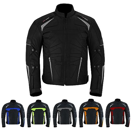 Inflori Motorbike Jacket Motorcycle Waterproof Jacket for men Corduroy 600D CE Approved Protective Armored with Hi-Vis Panels Summer and Winter Jacket (UK, Alpha, M, Regular, Regular, Black)