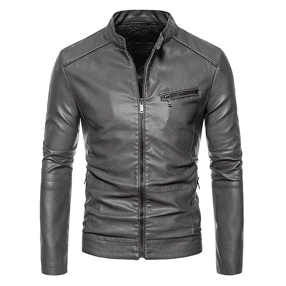 Leather Jacket Men's Casual Oversize Hoodie Motorcycle Fleece Jacket Thin Lightweight Rain Cape A4-Grey XXL