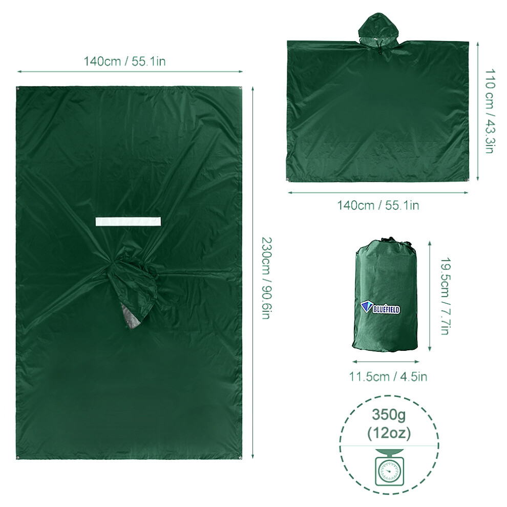 Rain Poncho Waterproof Raincoat with Hood Lightweight Cycle Rain Cover Hiking Hooded Coat Jacket Motorcycle Rain Poncho Picnic Mat