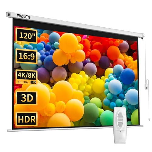 WASJOYE 120"Motorized Projector Screen Electric Diagonal Automatic Projection 16:9 8K HD Movies Screen for Home Theater Cinema Office Video Game Outdoor Indoor W/Remote Control and Wall/Ceiling Mount