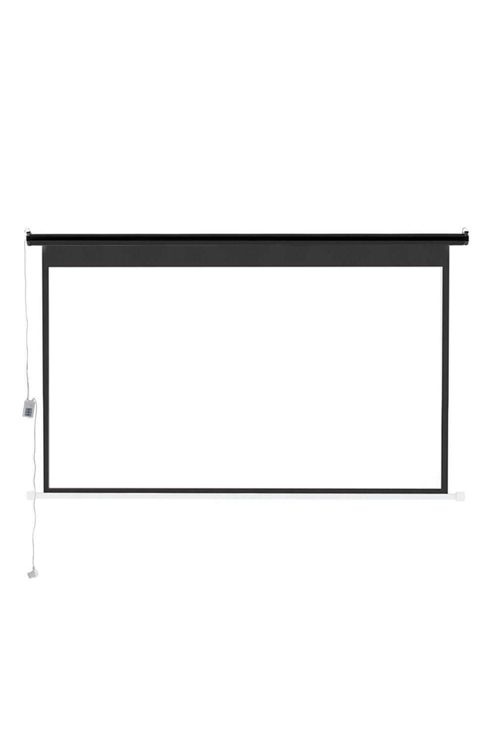 Living and Home 16:9 Electric Motorized Projector Screen with Remote, 100" Black in White