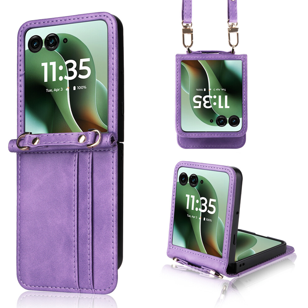 (Purple) For Motorola Razr 60 Ultra 5G Razr Ultra 2025 5G Case Card Slots Leather Phone Cover with Lanyard