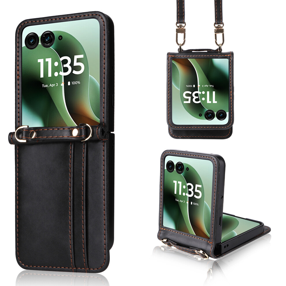 (Black) For Motorola Razr 60 Ultra 5G Razr Ultra 2025 5G Case Card Slots Leather Phone Cover with Lanyard