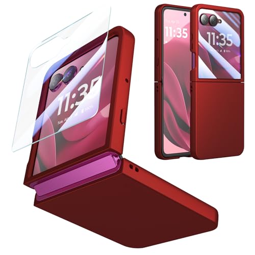 Foluu Slim Fit Case for Motorola Razr 60 Ultra 2025 [Hinge Protection] [Built-in Front Screen Protector], Ultra Thin Matte PC Shockproof Protective Cover for Moto Razr 60 Ultra 2025 (Red)