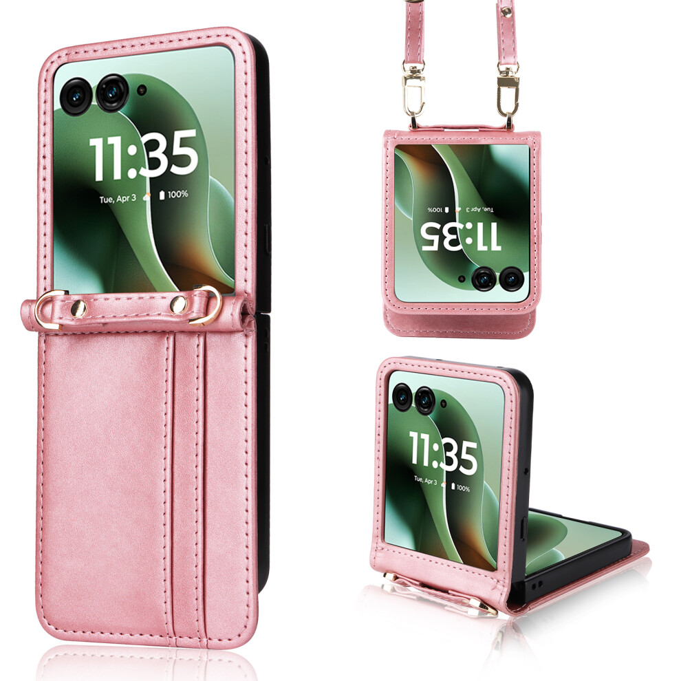 (Pink) For Motorola Razr 60 Ultra 5G Razr Ultra 2025 5G Case Card Slots Leather Phone Cover with Lanyard