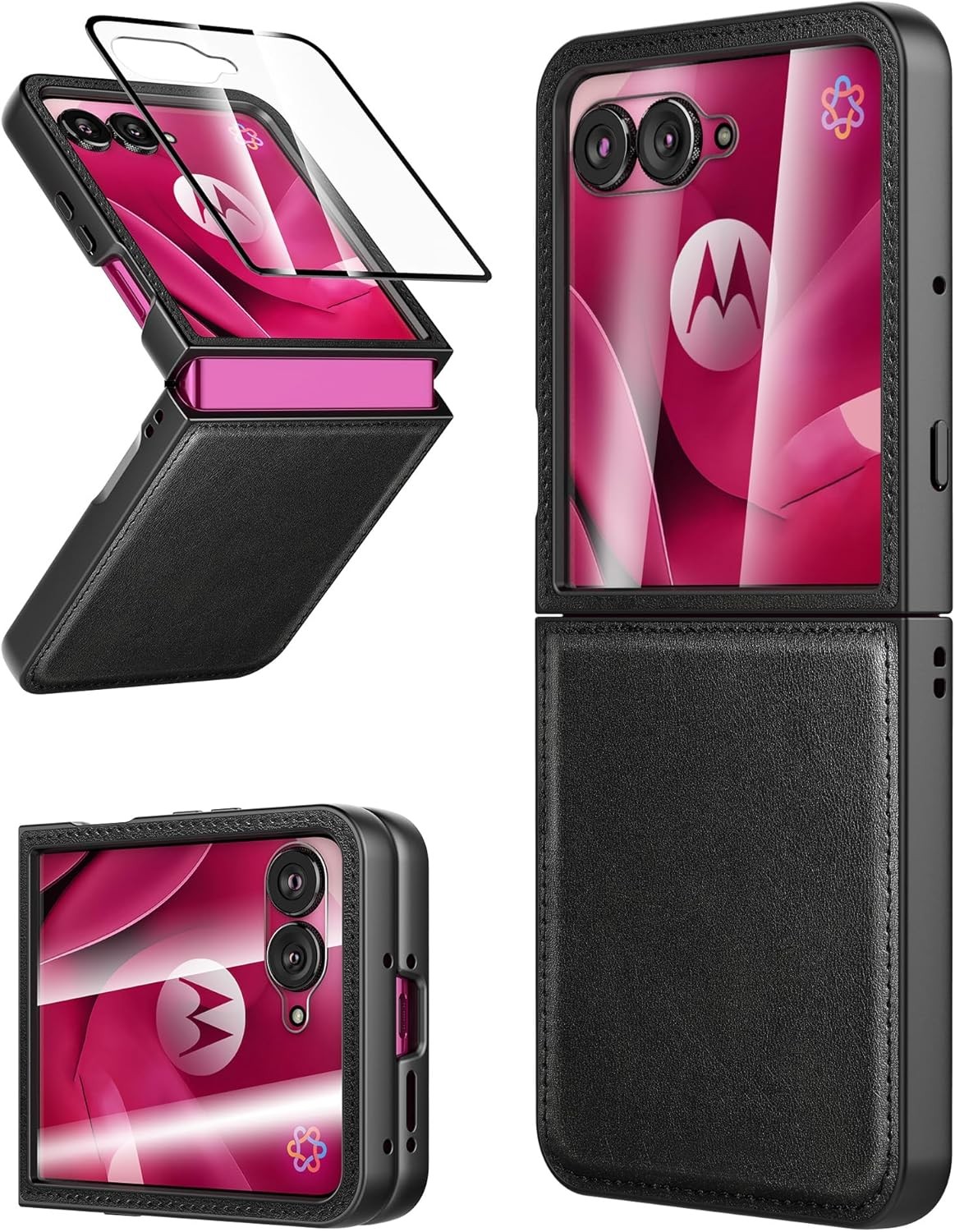 Foluu for Motorola Razr 60 Ultra Leather Case, with Front Built-in Screen Prote