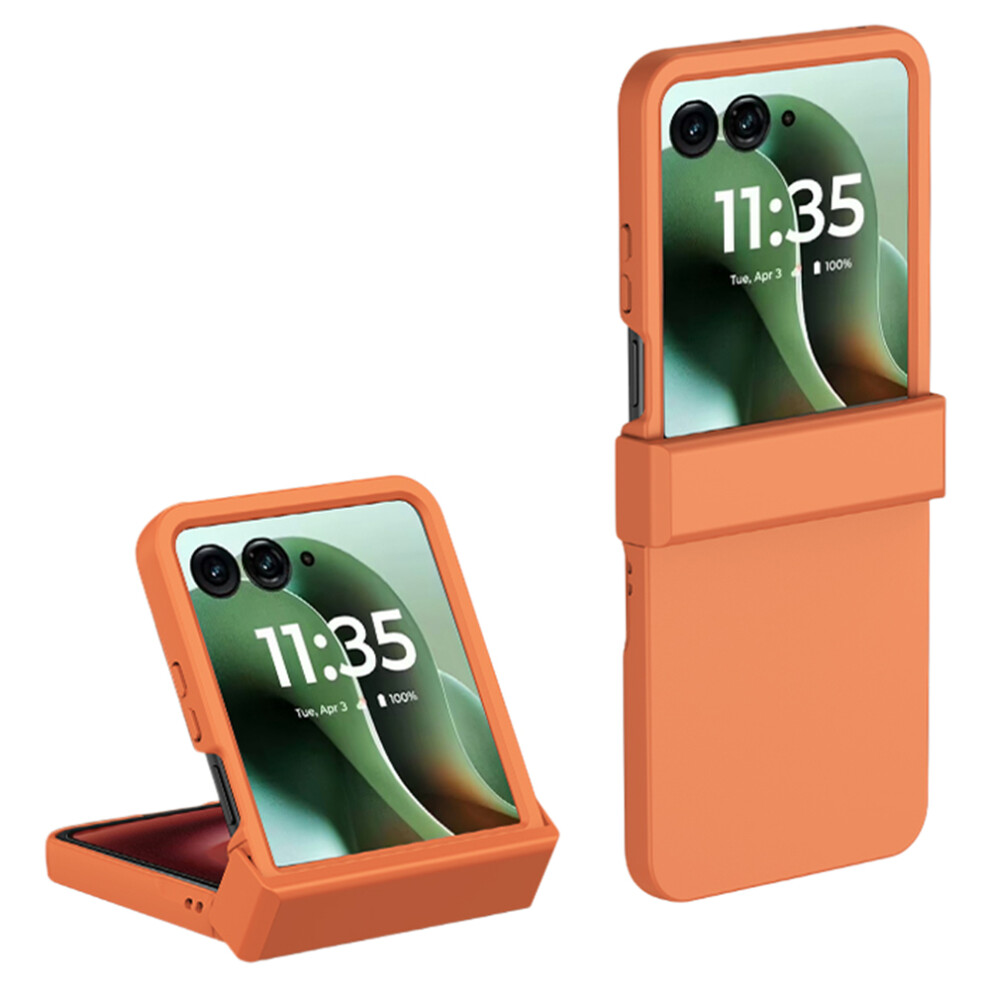 (Orange, One size) For Motorola Razr 60 Case Ultra Thin Leather Coated Hard Pc Folding Phone Cover