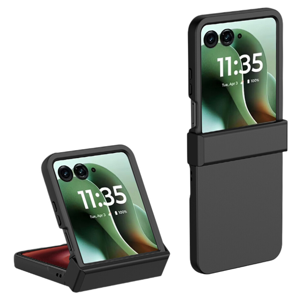 (Black, One size) For Motorola Razr 60 Case Ultra Thin Leather Coated Hard Pc Folding Phone Cover