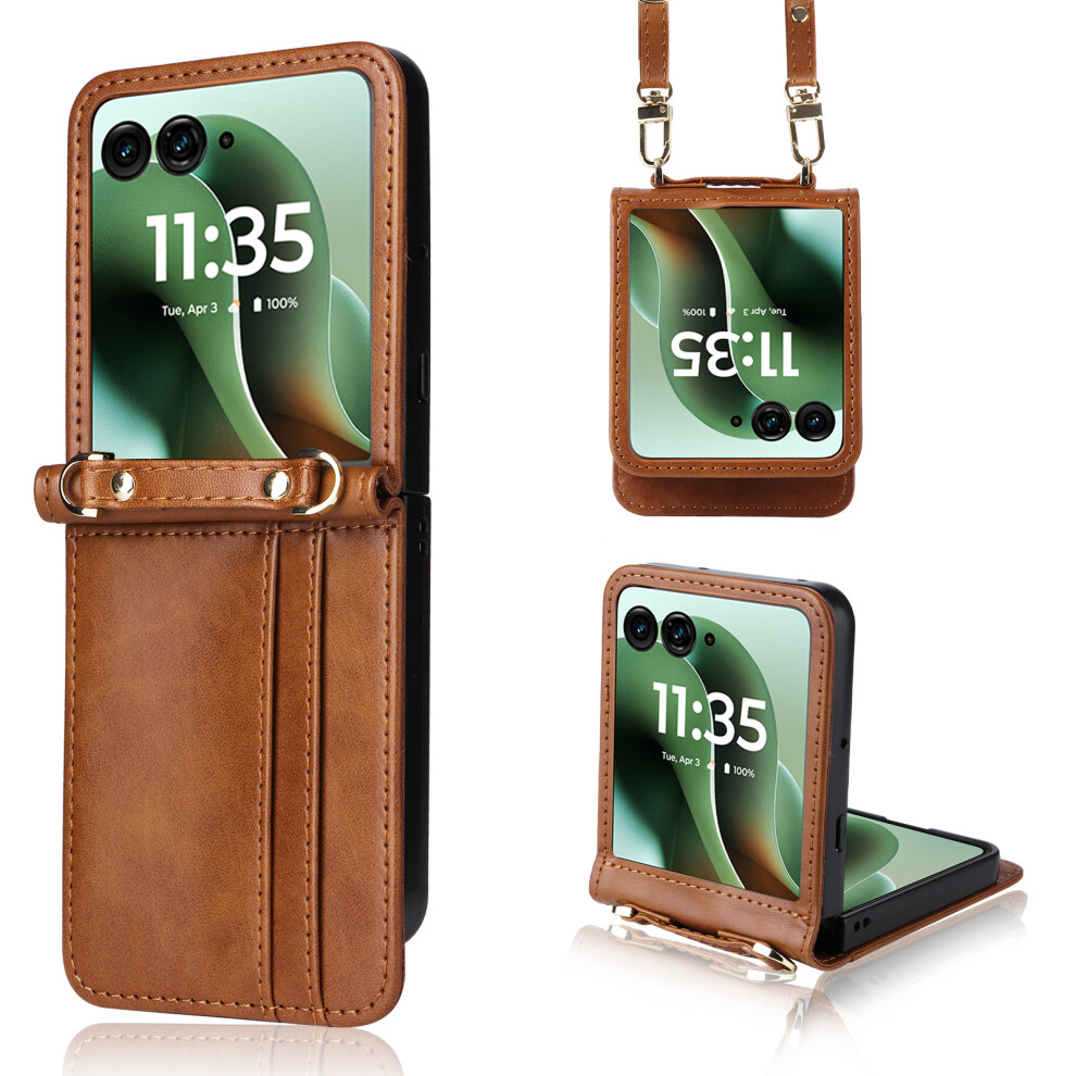 (Brown) For Motorola Razr 60 Ultra 5G Razr Ultra 2025 5G Case Card Slots Leather Phone Cover with Lanyard