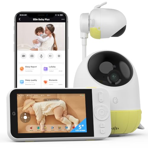 Ellie Baby Plus 5" Monitor with 2.5K FHD camera, Face Cover Alert ,Crying Detect, Night Vision, 2-way Audio, Pan-Tilt-Zoom, Crib & Wall Mount All inside,No Wifi, No Subscription, With APP