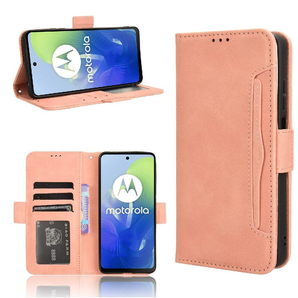 (Pink) Phone Case for Motorola Moto G04 Card Slots Holder Kickstand Pu Leather Magnetic Flip Folio Rfid Blocking