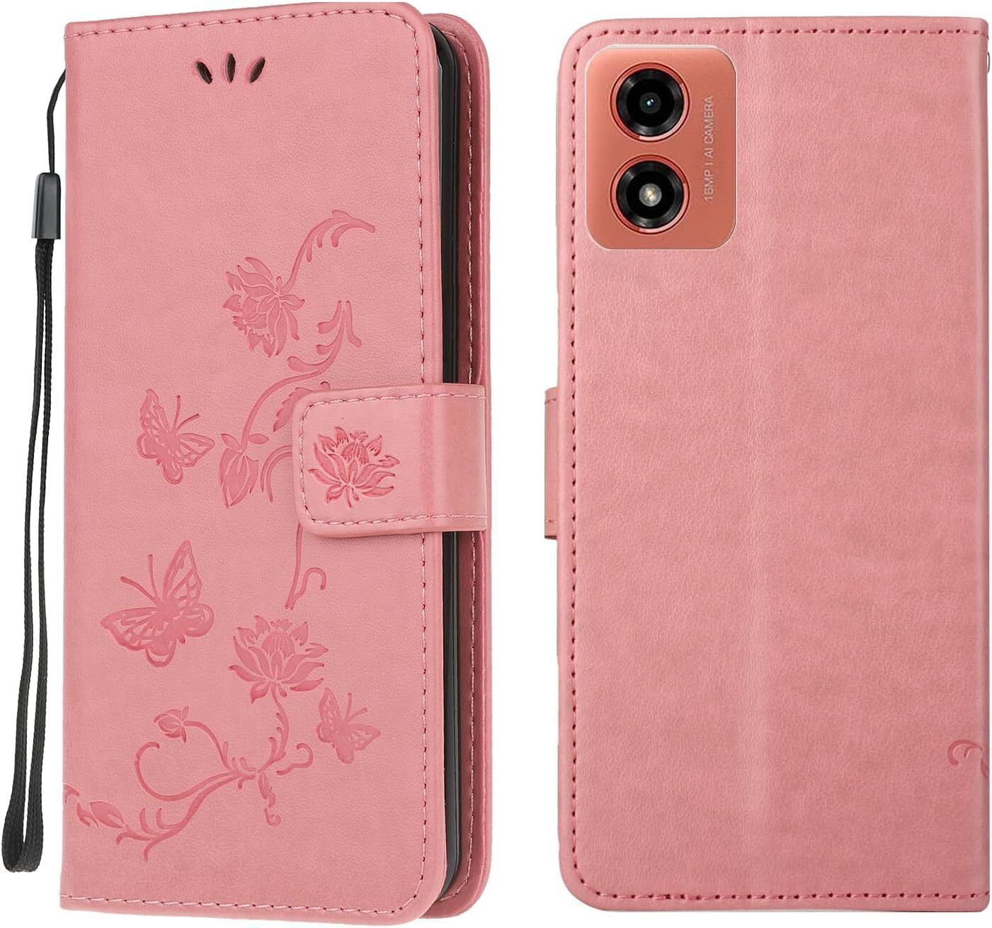 for Motorola Moto G04 / G04s / G24 Case - Leather Wallet Phone Case, Magnetic Book Flip Folio Cover [Card Slots] and [Kickstand] Case Compatible with Moto G04 / G04s / G24 - Pink