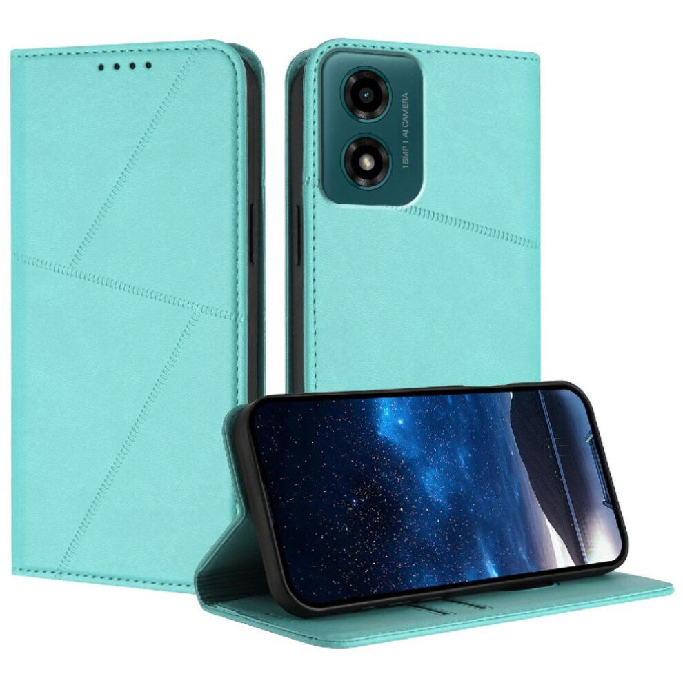 (Green) Flip Case for Motorola Moto G04 Pu Leather Wallet Protection Card Slots Holder Magnetic Wrist Strap