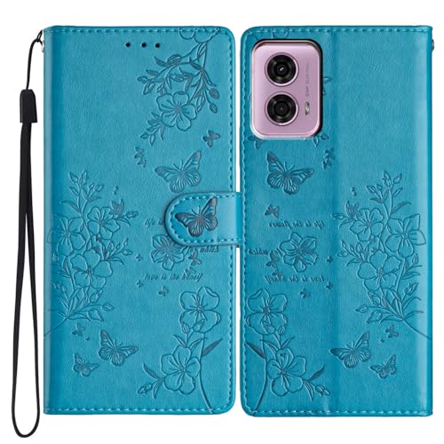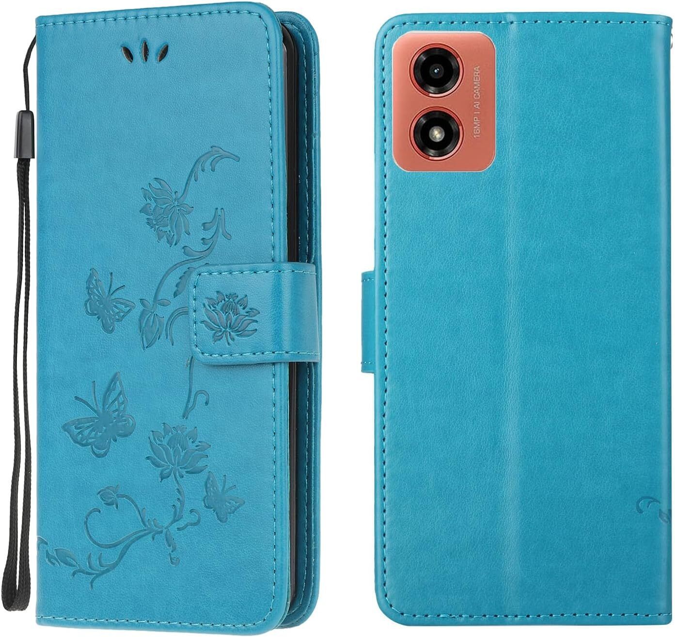 Reevermap for Motorola E14 Case MOTO G04 Case Flip Wallet Case Shockproof PU Leather Butterfly Magnetic Bumper Cover for Motorola MOTO G24 Phone Case with Kickstand Card Holder, Blue