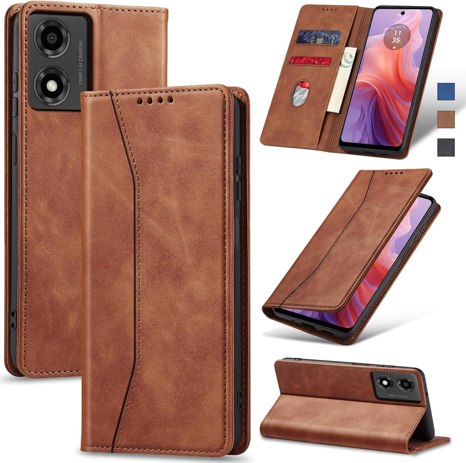 Motorola Moto E14/G24/G04 Leather Wallet Case Card Holder, Kickstand, Shockproof