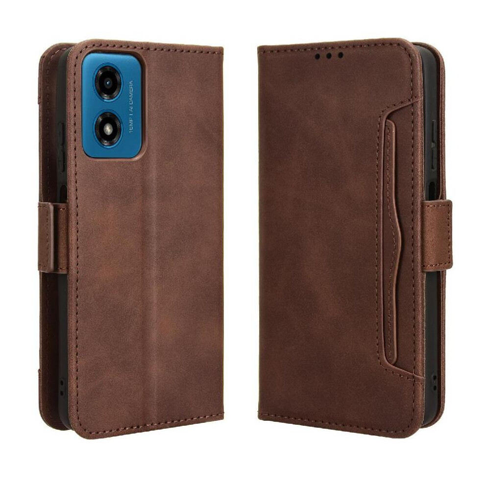 (Brown) Flip Case for Motorola Moto G04 Card Slots Magnetic Closure Flip Cover Precise Cutouts