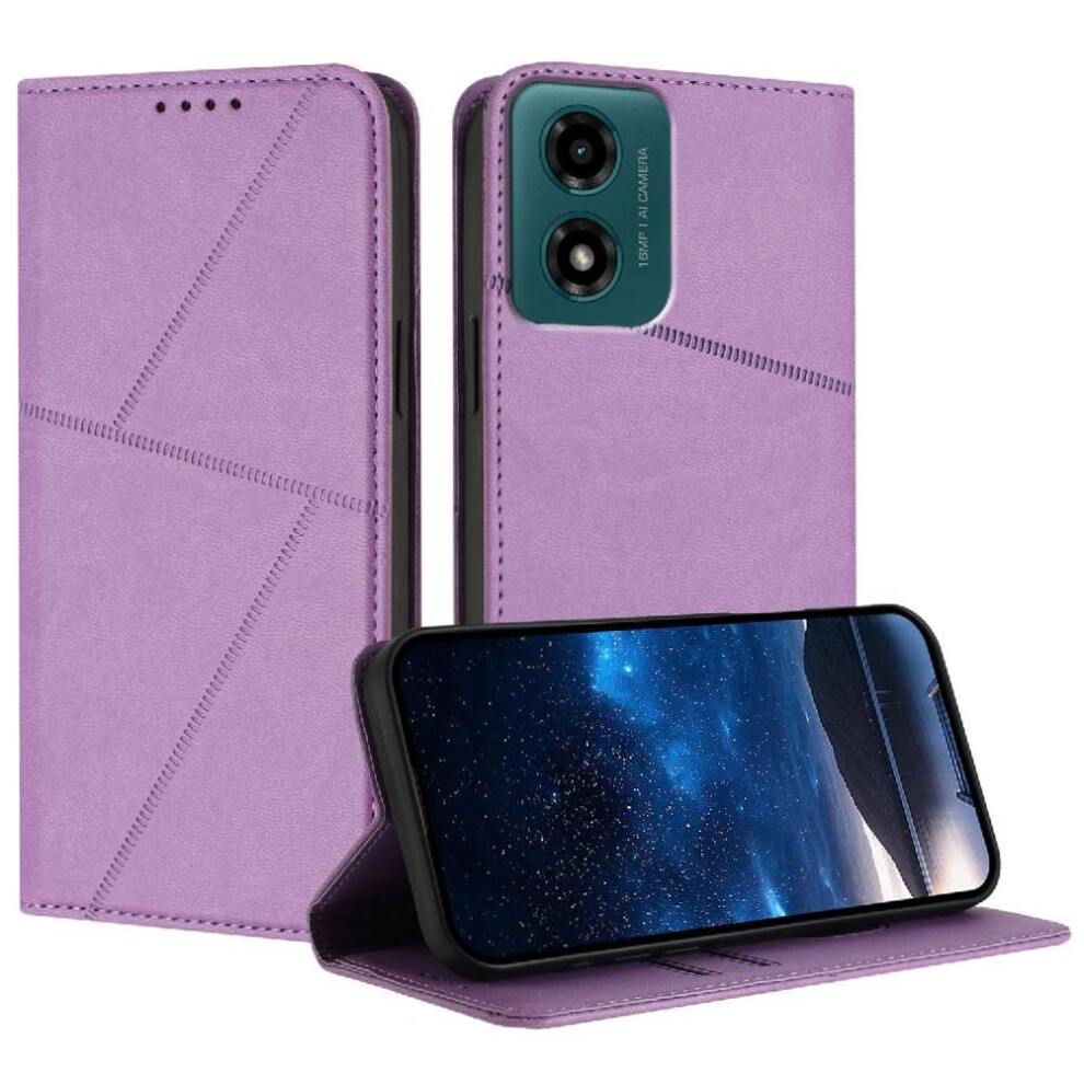 (Light Violet) Flip Case for Motorola Moto G04 Flip Protective Mobile Phone Anti-fall Premium Pu Leather with Card Slots with Kickstand Function