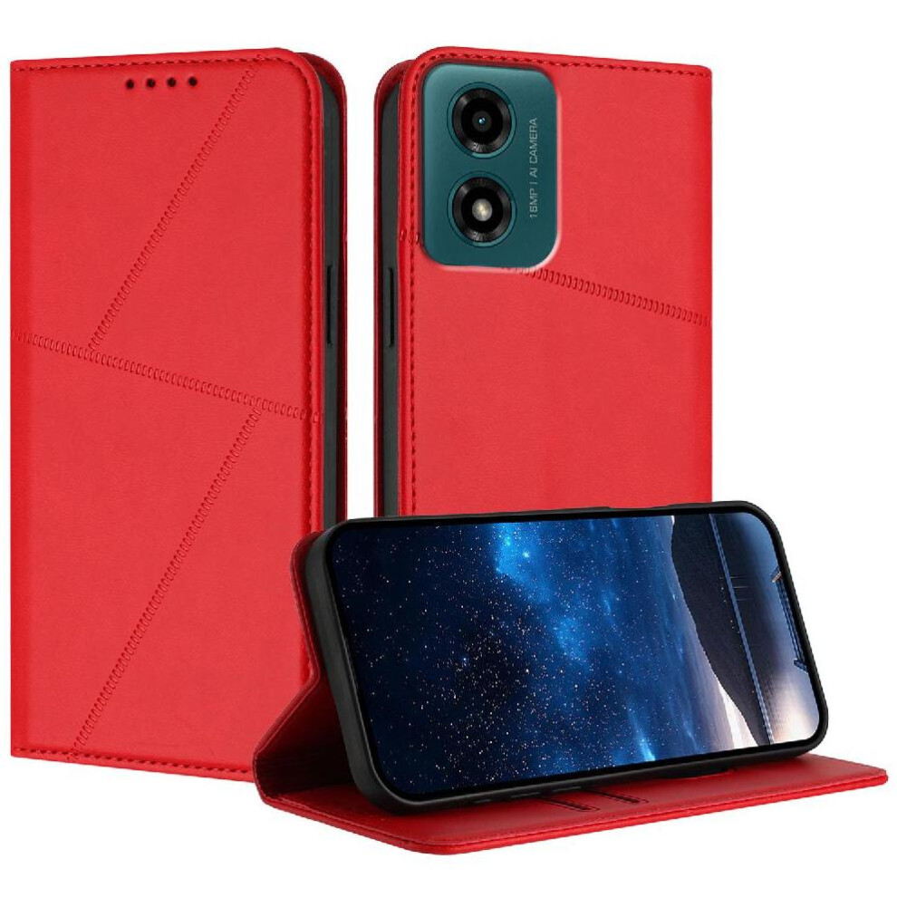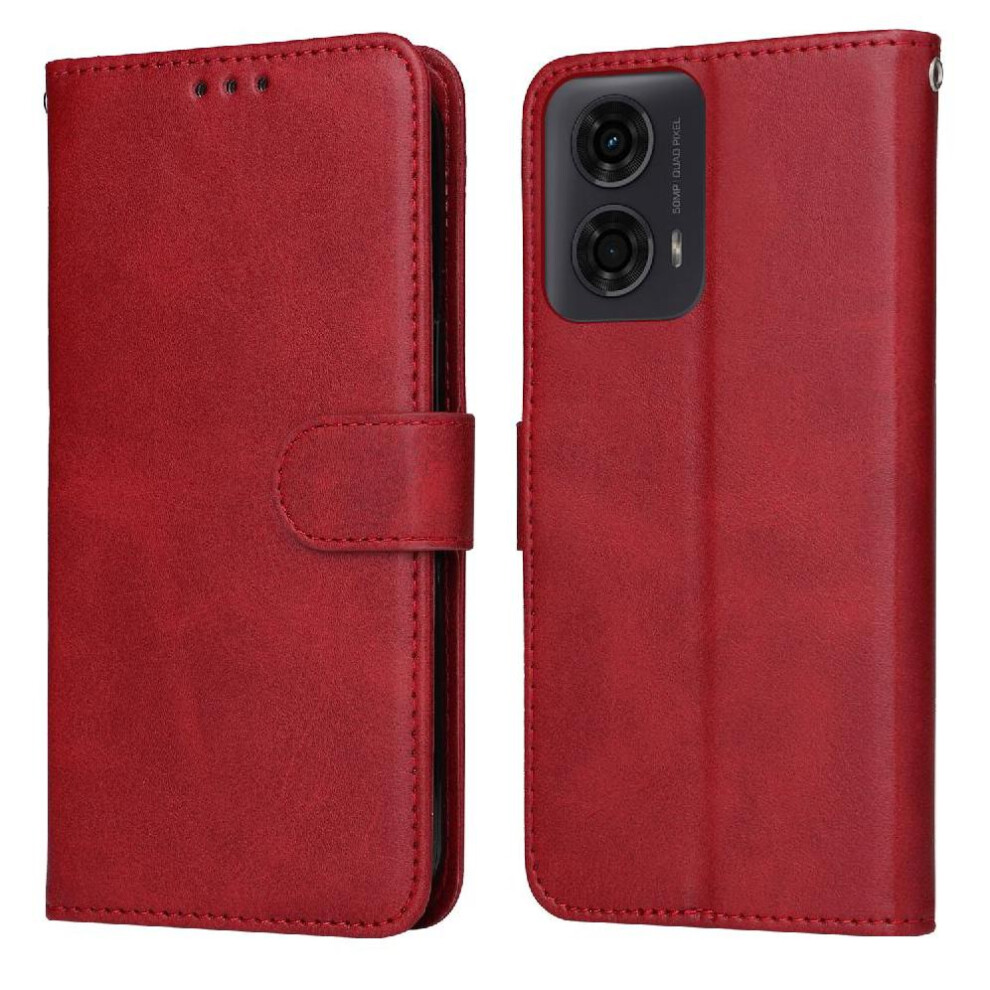 (Red) Flip Case for Motorola Moto G04 Flip Protective Mobile Phone Anti-fall Premium Pu Leather with Card Slots with Kickstand Function